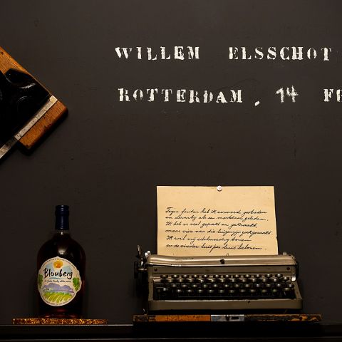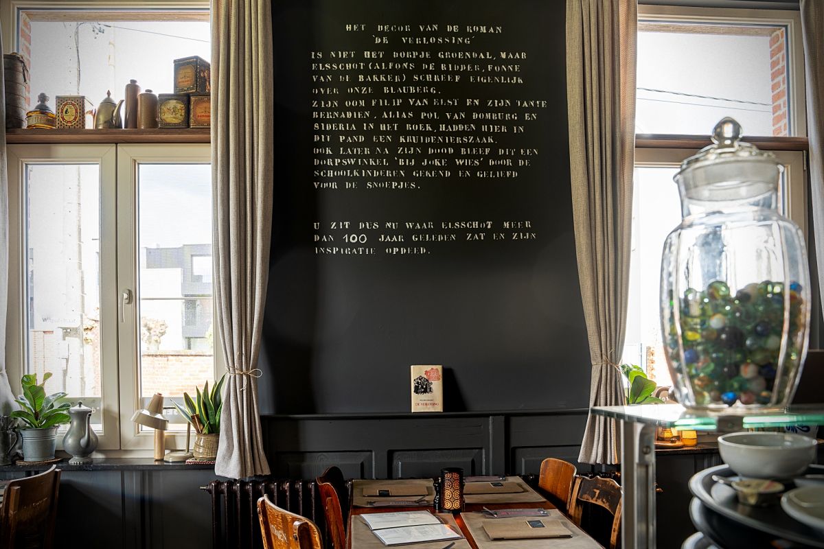 De schrijver Willem Elsschot is onlosmakelijk verbonden met Antwerpen, waar hij leefde en inspiratie vond voor de meeste van zijn romans. Ook de Blauberg speelde een belangrijke rol in zijn leven. Hij kwam er op vakantie bij zijn oom Filip van Elst, die in dit hoekhuis een kruidenierszaak had. Willem zocht hier de rust op om te studeren, bedacht zijn schrijverspseudoniem, had een korte romance en vond uiteindelijk inspiratie voor zijn plattelandsroman "De Verlossing".